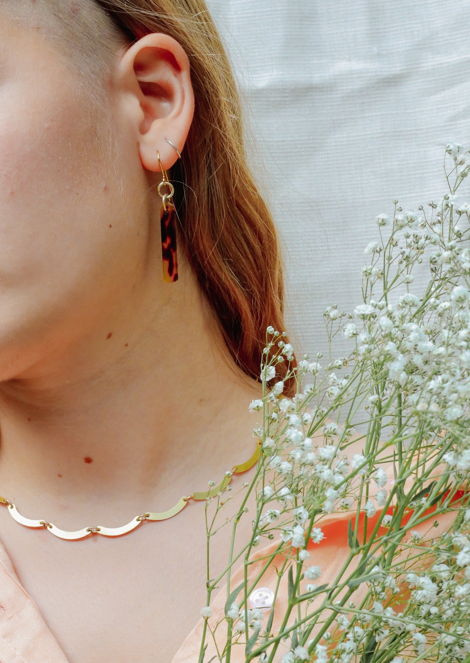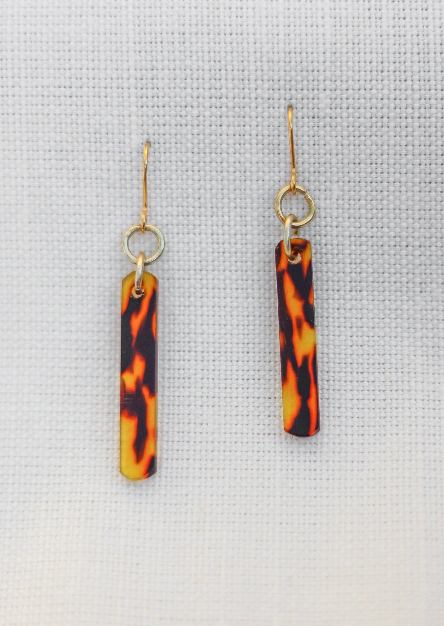 Back by popular demand: these drop earrings are lovingly crafted from recycled tortoiseshell acetate with gold earring loops.
