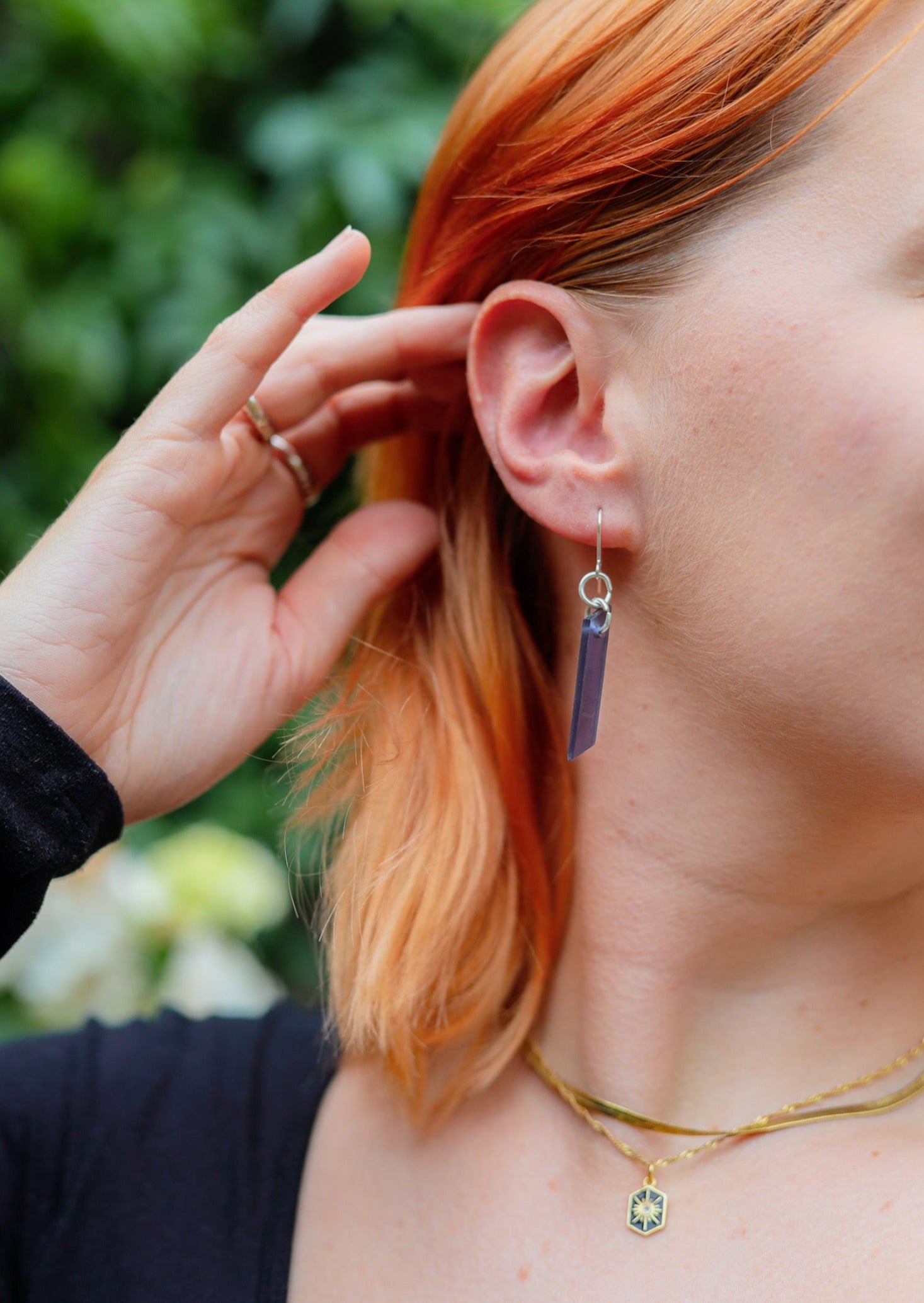 Add a touch of summer to your look with our Acetate Santorini Blue Earrings. With an angled, asymmetric design, these earrings are sure to make a stylish statement. Perfect for any occasion, from a day at the beach to a night out with friends.