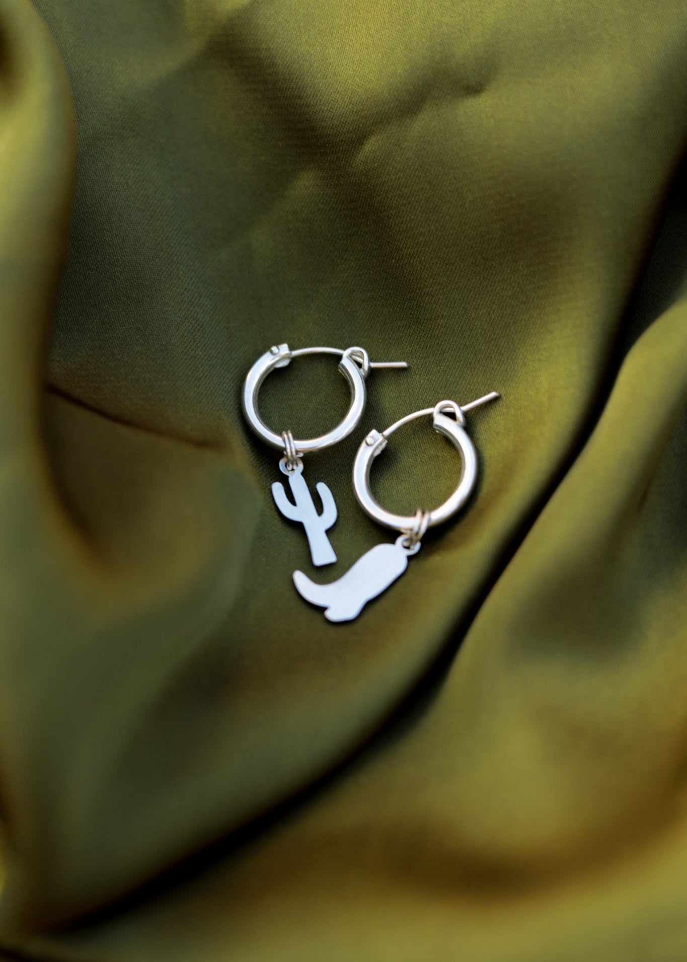 Round out your western-inspired look with these Cowboy & Cactus Charm Hoops. These asymmetric charm huggie hoops are made from recycled silver, adorned with an adorable cowboy boot and cactus charm. They're giving big Taylor Swift vibes and we're here for it!