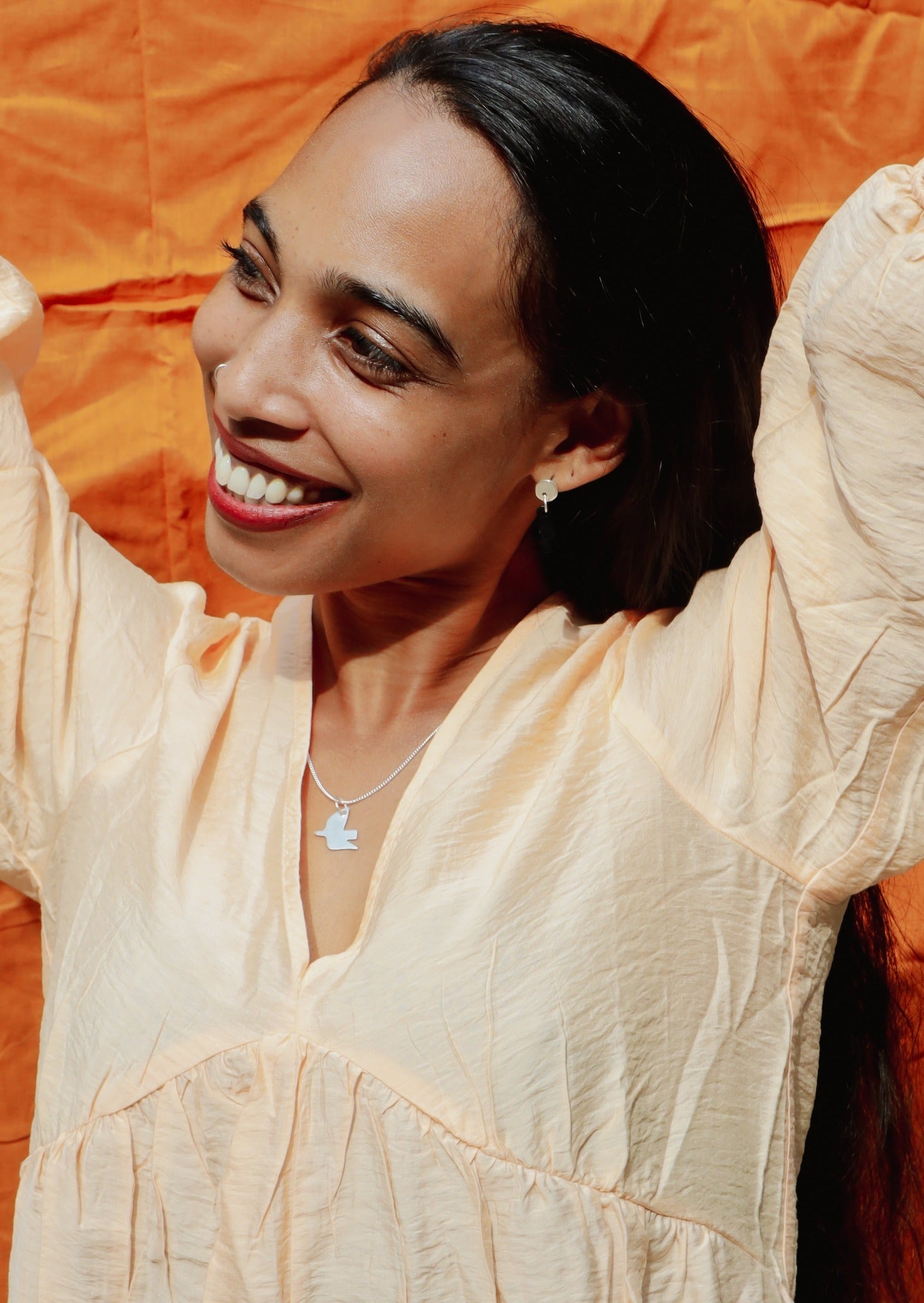 Hope for pivotal change. This classic dove necklace has been reimagined in 100% recycled silver. Handmade from 0.925 silver, this piece is named after one of Pivot’s earliest supporters.
