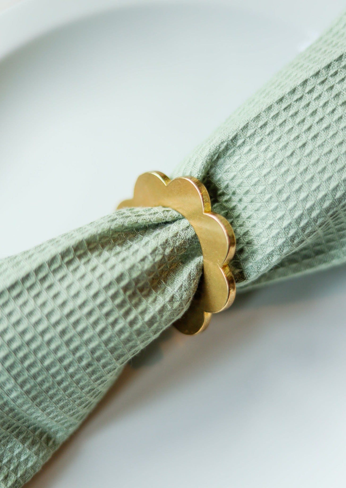 Add the finishing touches to your table setting with this stylish set of responsible brass napkin rings! Featuring three eye-catching designs: a scallop edged flower, triangle, and circle - these rumbled napkin rings will turn any meal into a special occasion. Whether you're hosting a dinner party or just bringing a little extra finesse to the dinner table, these are a favourite way to dress up any spread. Bon appetite!