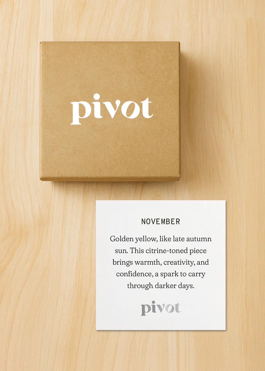 Golden yellow, like late autumn sun in November. This citrine-toned piece brings warmth, creativity, and confidence, a spark to carry through darker days.