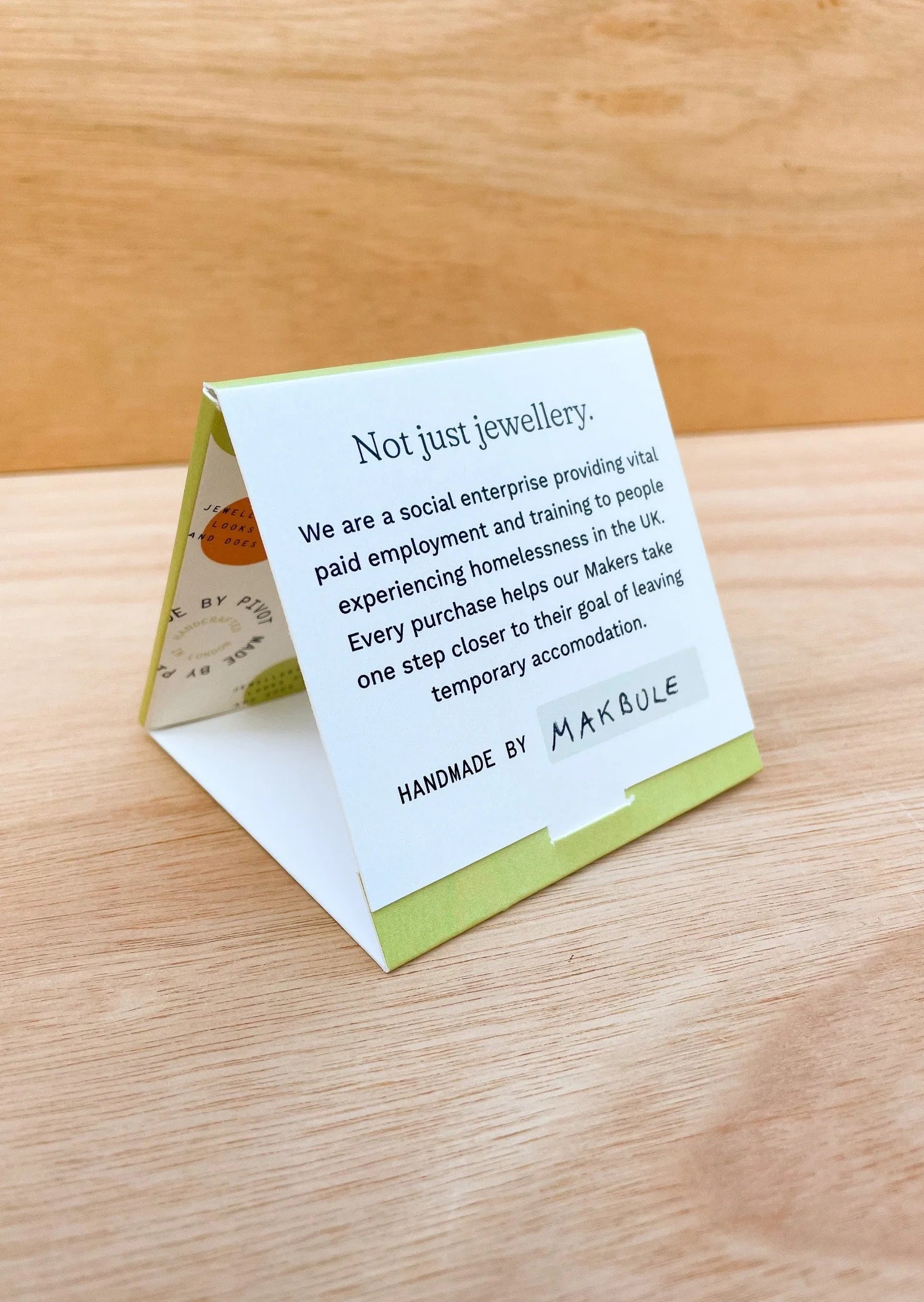 We respect both people and planet - that’s why we focus on using sustainable materials such as recycled silver and upcycled acetate in our handmade jewellery.
