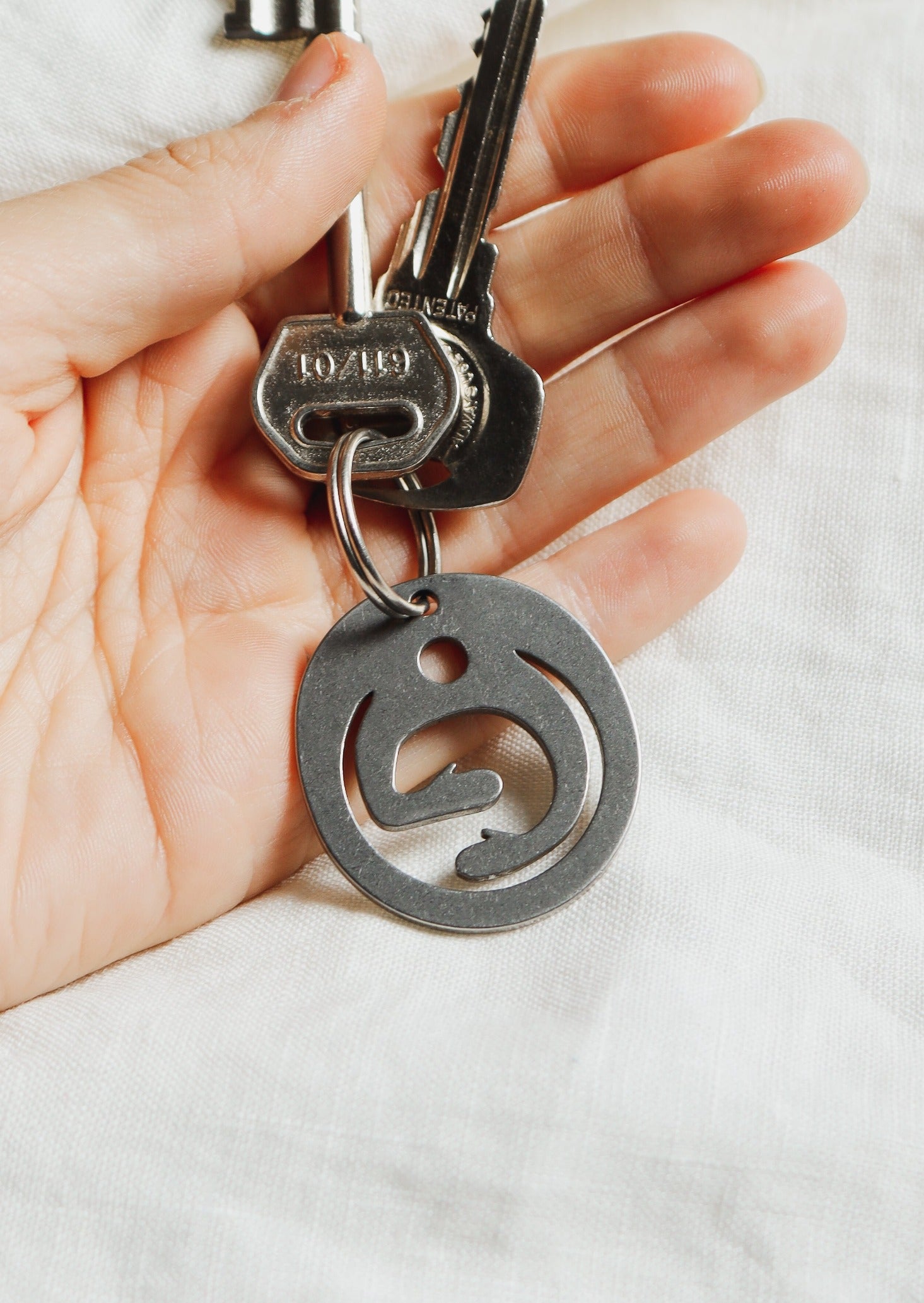 This unique keyring pays homage to our "Hugs Soon" Bookmark. Made from responsibly sourced 2mm Stainless Steel, this lovely keyring has a good weight to it and is a smart addition to any bunch of keys.