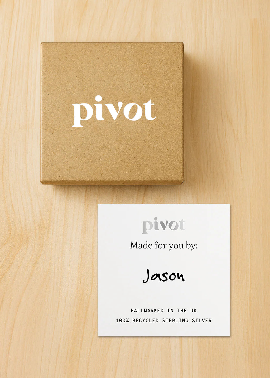 We respect both people and planet - that’s why we focus on using sustainable materials such as recycled silver and upcycled acetate in our handmade jewellery.